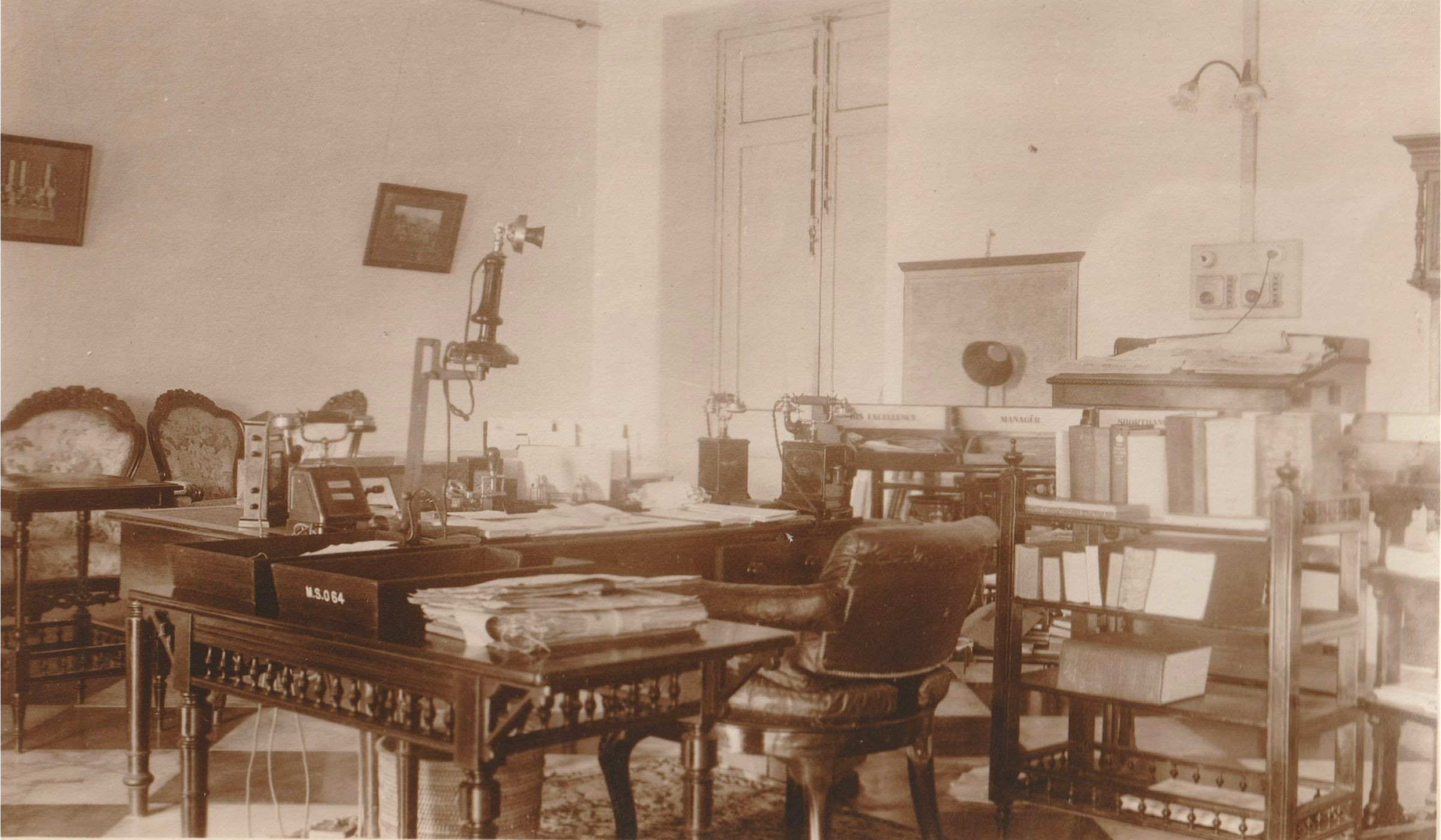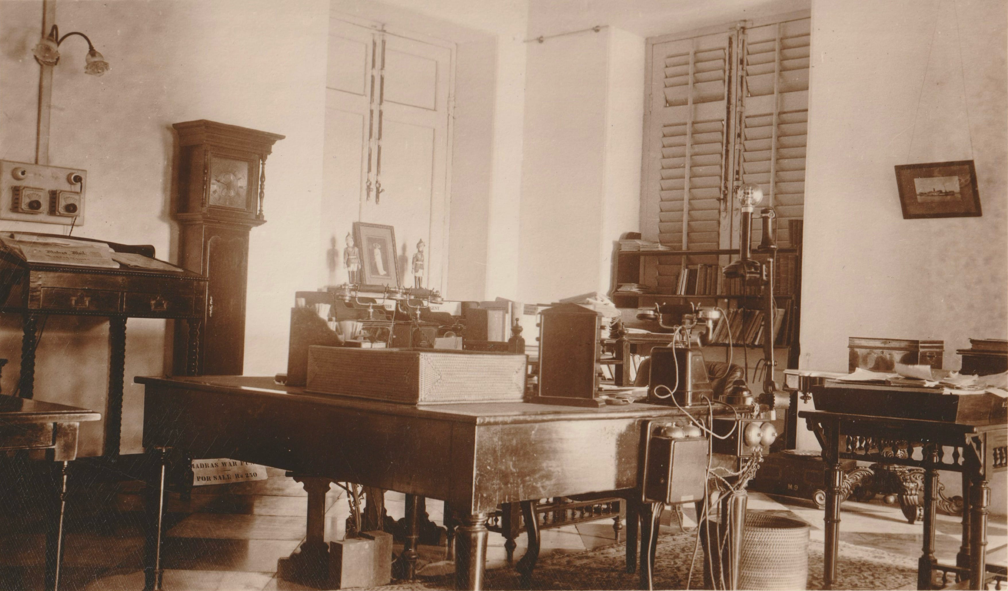 A peek inside the telegraph room at Governor's House, Madras, in 1918